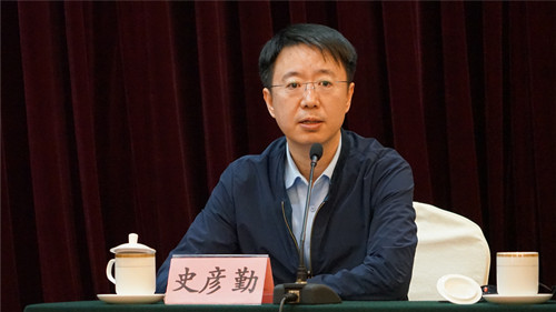 图为地勘基金中心党委专职副书记史彦勤主持大讲堂